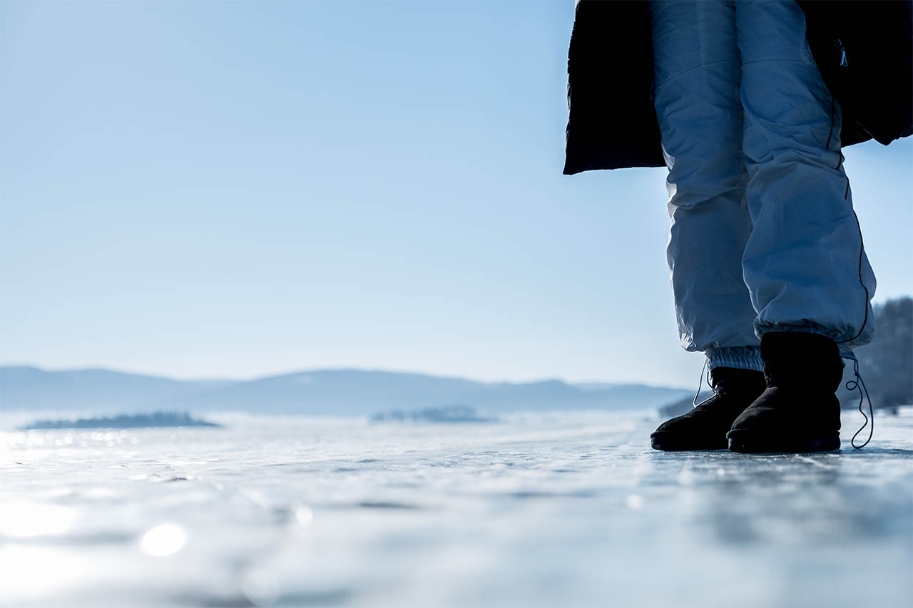 Well settled in the sled, we walk around. A horse ride. Rhythmed by the sound of hooves on the lake. This light and harmonious sound responds to the sound of the two bells positioned on top of a wooden arch-shaped structure. Serving as a hitch. Let yourself be rocked. The feeling of being weightless. There’s only one thing to do: admire the vastness. Under a bright sunshine. In the land of the great blue sky.