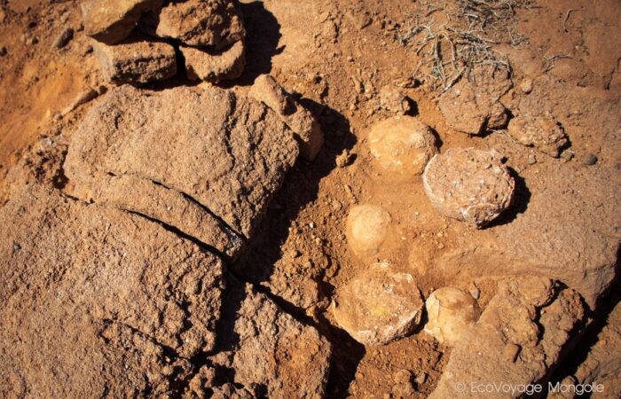 During our visit, we’ll embark on an extended walk amidst the canyons and cliff tops, taking in the breathtaking scenery. It’s essential to exercise caution and avoid venturing onto or below overhanging promontories. Amidst the red terrain, green desert plants provide a striking contrast, while living reptiles, including small lizards camouflaged among the rocks and sand, seek shelter around the vegetation. The Mongolian name “Bayanzag” translates to the abundance of Saxaul (zag) bushes in the surrounding plains of the Flaming Cliffs.